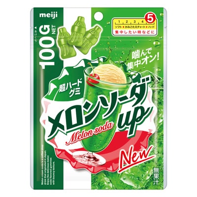 人気のハード食感グミ、レトロポップなデザインで爽やかなメロンクリームソーダ味が新登場!「メロンソーダアップ」 4月1日 新発売/全国