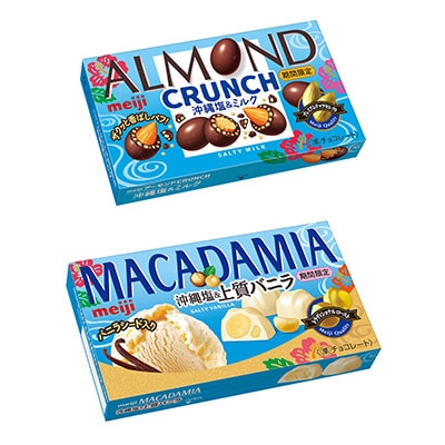 昨年トータル販売数148万個超え!沖縄塩を使用した“夏のご褒美チョコ”が食感や風味をパワーアップ!「アーモンドチョコレートクランチ沖縄塩&ミルク」「マカダミアチョコレート沖縄塩&上質バニラ」6月3日 期間限定発売/全国