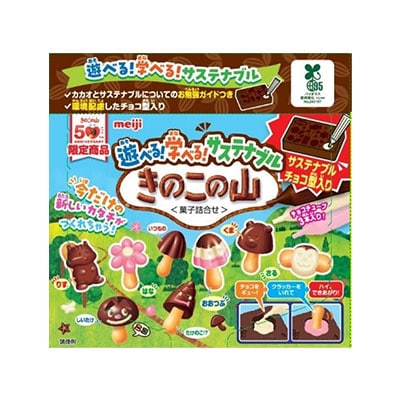 カカオハスクを使用したバイオプラスチックトレーを市販商品に初採用 サステナブルなチョコ型で、お子さまと楽しく環境について学べる機会を提供「遊べる!学べる!サステナブルきのこの山」きのこの山50周年記念 2025年7月22日 期間限定発売