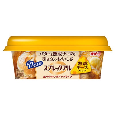 忙しい毎日の朝食にもパンにぬりやすいホイップタイプのスプレッド バターを主役に、なたね油・チーズ・塩だけで仕上げた「明治スプレッタブル 熟成チーズブレンド」9月1日 新発売/全国