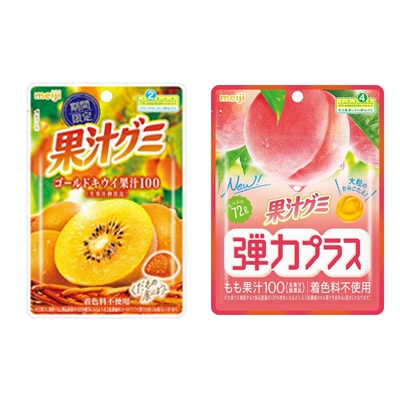 気分で選べるおいしさと食感!「果汁グミ」から期間限定「果汁グミゴールドキウイ」と、ハードな噛み応え「果汁グミ弾力プラスもも」が新発売
